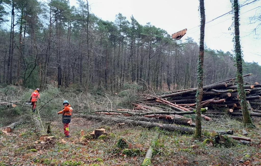La solution du câble aérien est bien connue et très utilisée en montagne, lorsque la pente empêche l’approche des véhicules. Mais ces dernières années, elle s’est développée en plaine, notamment pour préserver la biodiversité. « Les entreprises d’exploitation forestière sont bien conscientes de leur impact sur l’environnement. Elles font de plus en plus attention », observe Jean‑Baptiste Lefloch. Avec le réchauffement climatique, les périodes pluvieuses s’allongent à l’automne et en hiver, rendant souvent impossible le débardage conventionnel.
